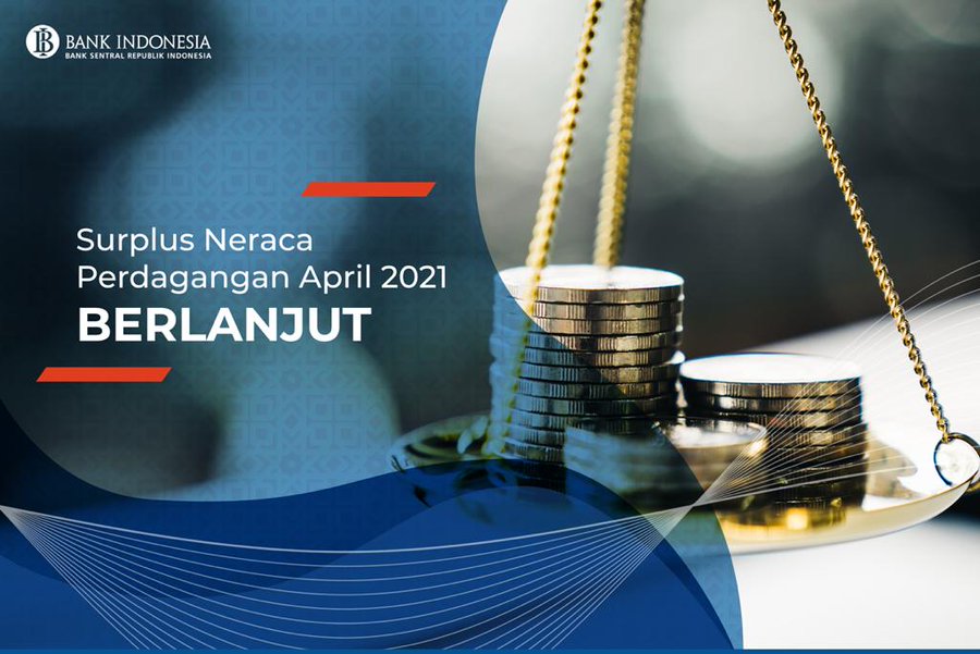 Berdasarkan data Badan Pusat Statistik (BPS), neraca perdagangan Indonesia April 2021 kembali surplus sebesar 2,19 miliar dolar AS, meningkat dibandingkan dengan surplus bulan sebelumnya sebesar 1,57 miliar dolar AS. Dengan perkembangan tersebut maka neraca perdagangan Indonesia kembali mencatatkan nilai positif sejak Mei 2020. Bank Indonesia memandang surplus neraca perdagangan tersebut berkontribusi positif dalam menjaga ketahanan eksternal perekonomian Indonesia. Ke depan, Bank Indonesia terus memperkuat sinergi kebijakan dengan Pemerintah dan otoritas terkait untuk mendukung pemulihan ekonomi.