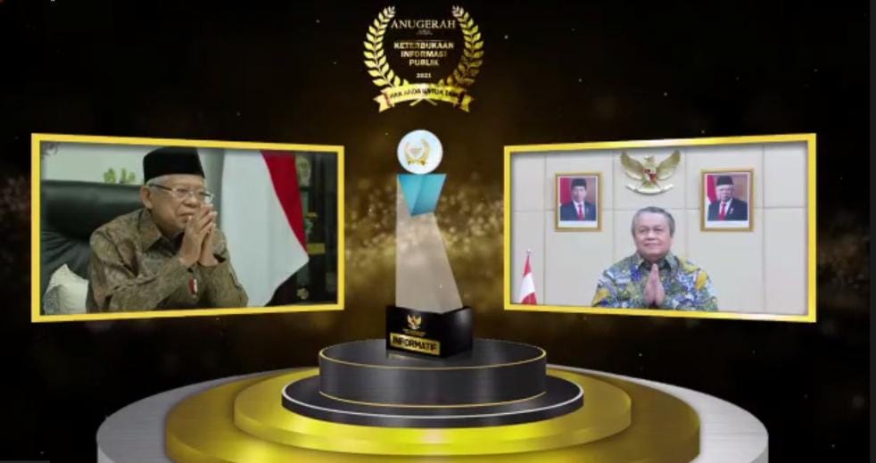Bank Indonesia (BI) meraih penghargaan keterbukaan informasi badan publik dengan predikat Badan Publik Informatif dalam acara Penganugerahan Keterbukaan Informasi Badan Publik Tahun 2021. Penghargaan diberikan oleh Wakil Presiden RI, Ma’ruf Amin, kepada Gubernur BI, Perry Warjiyo, secara virtual, pada hari ini (26/10). BI menjadi salah satu dari 83 Badan Publik yang memperoleh Badan Publik Informatif dari total 337 Badan Publik. Anugerah diperoleh untuk kategori Badan Publik Lembaga Negara dan Lembaga Pemerintah Non Kementerian. Pencapaian ini menjadi wujud nyata komitmen BI dalam keterbukaan informasi serta senantiasa melakukan inovasi dalam pengembangan layanan informasi yang berkualitas kepada publik, khususnya dalam masa pandemi Covid-19.