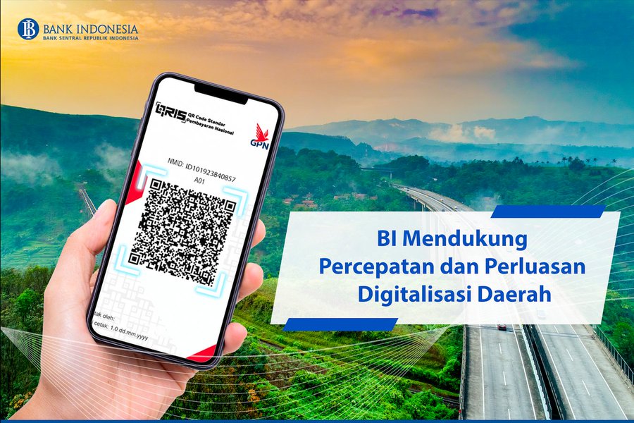 Bank Indonesia (BI) mendukung upaya Pemerintah dalam mempercepat dan memperluas digitalisasi daerah. Hal ini diwujudkan dengan keanggotaan BI dalam Satuan Tugas Percepatan dan Perluasan Digitalisasi Daerah (Satgas P2DD), sebagaimana Keputusan Presiden Nomor 3 tahun 2021. Sejalan dengan Visi Blueprint Sistem Pembayaran Indonesia (BSPI) 2025, dukungan BI terhadap digitalisasi daerah adalah melalui penciptaan ekosistem sistem pembayaran yang dapat mendukung integrasi ekonomi dan keuangan digital nasional, mendorong digitalisasi perbankan melalui Open Aplication Programming Interface (Open API), serta mengembangkan interlink Fintech dan Perbankan. Ketiga dukungan tersebut akan berkontribusi terhadap digitalisasi nasional dan pengelolaan keuangan daerah.